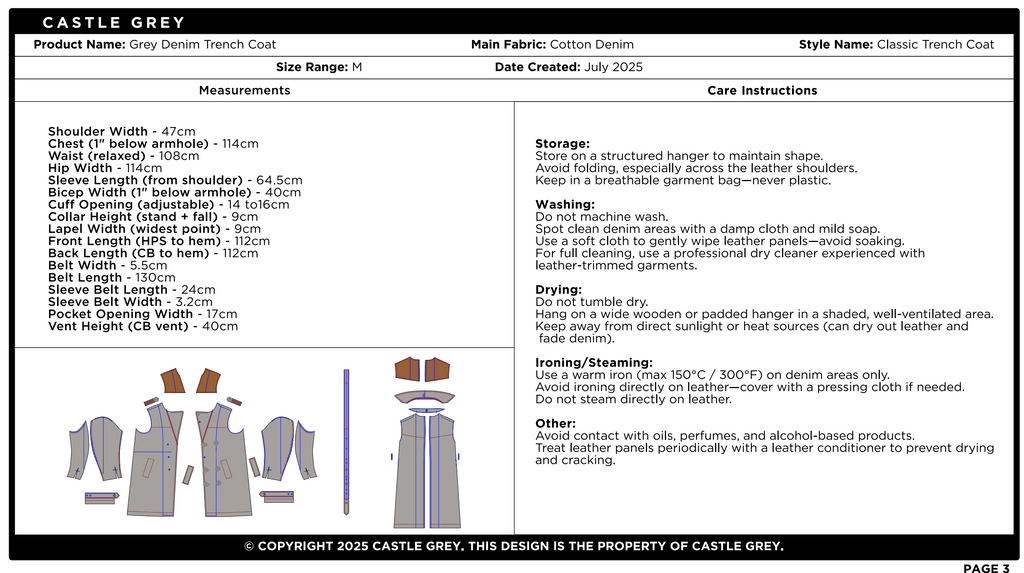 Custom Castle Grey Clothing Sample Coat
