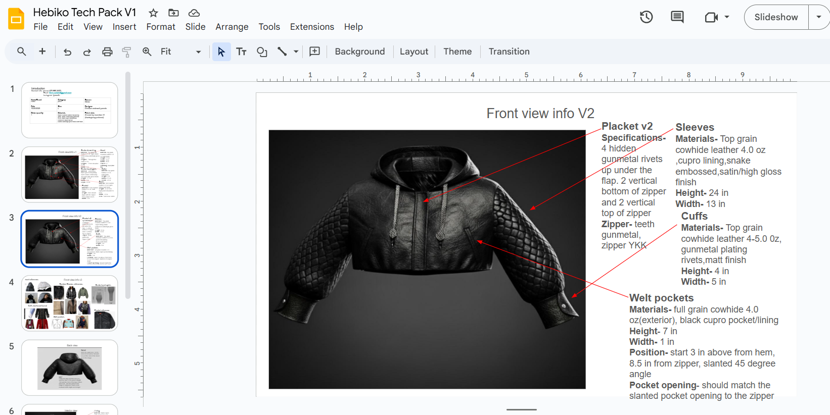 3. Closure style front center zipper (gunmetal)  with placket over it sealed using 4 hidden rivets ( 2 vertical at top and 2 vertical at bottom , gunmetal material)