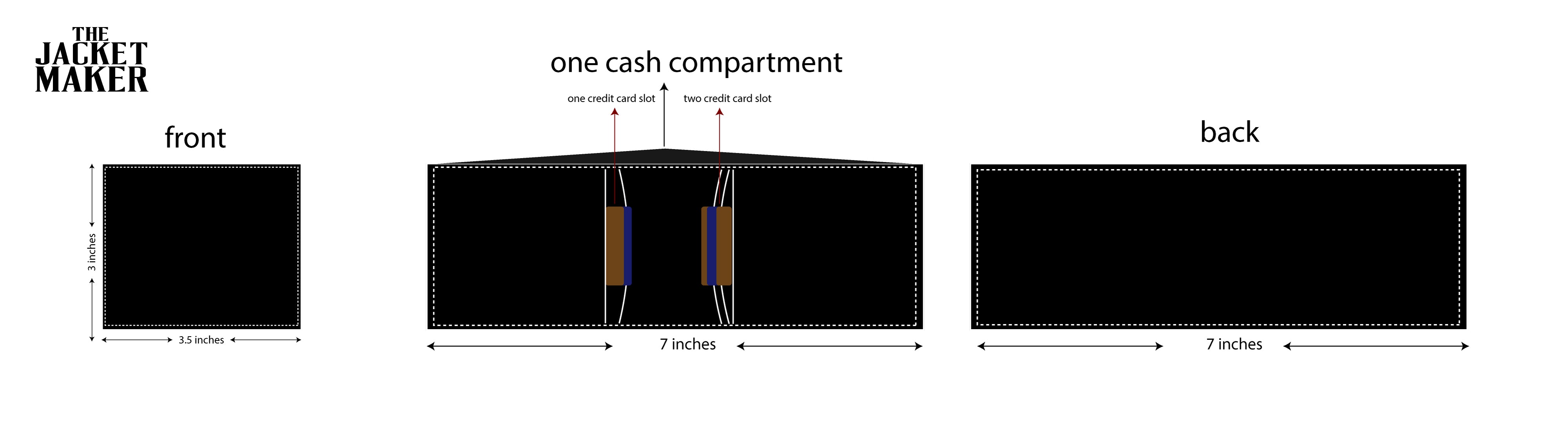 • Two slip pockets for credit cards on the right panel (as per illustration)
